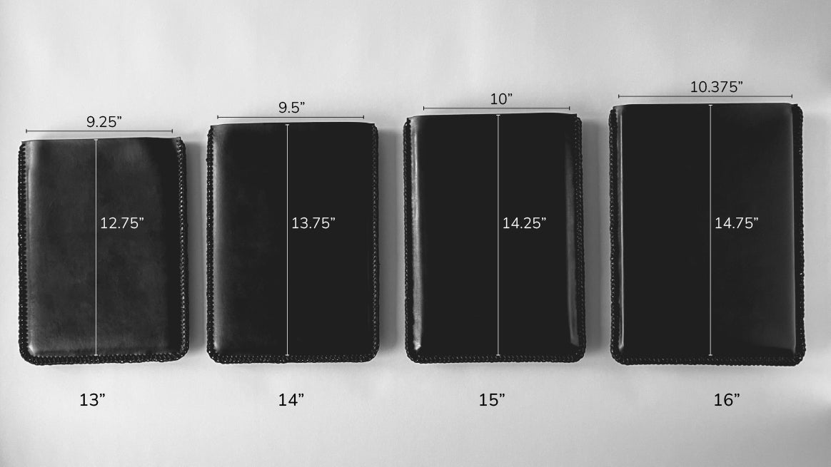 Our laptop and tablet sleeves are available in several sizes to ensure the best fit for your device. Please refer to our Size Guide above to find the right match. Most devices will fit the size listed, but if your laptop is on the thicker side, you may want to size up for a more comfortable fit. Our iPad sleeves are also designed to hold the Apple Pencil or a similar stylus alongside the device. Still not sure? Contact us — we're happy to help you find your perfect fit.